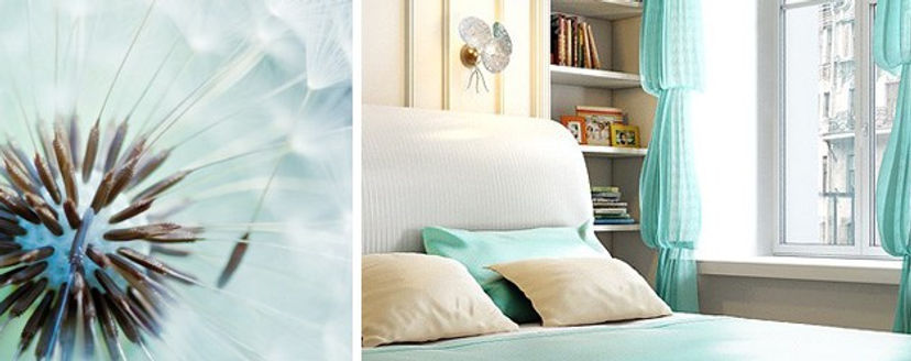Такие тона снимают возбуждение, успокаивают, помогают концентрировать внимание. При переизбытке солнечного освещения в интерьере можно использовать холодные синие цвета, их оттенки – бирюзовый, голубовато-серый.